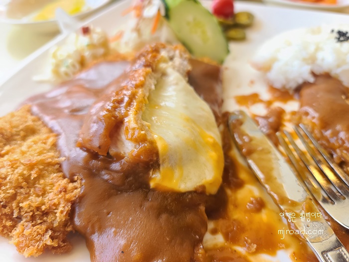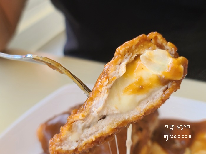 입에 넣자마자 입안 가득 느껴지는 치즈와 돈까스의 맛에 그저 반할 수밖에 없었다. 무엇보다도 고기가 너무 촉촉하고 맛있었다. 이러니 사람들이 맛있다고 하는구나! 하는 생각이 뇌리를 스쳐갔다. 사실 기본 돈까스도 고기가 정말 바삭하고 맛있었다. 물론 육즙도 나오는 것 같고 씹히는 맛을 음미하면서 먹게되는 묘한 중독성이 있었다. 한마디로 정말 맛있었다.