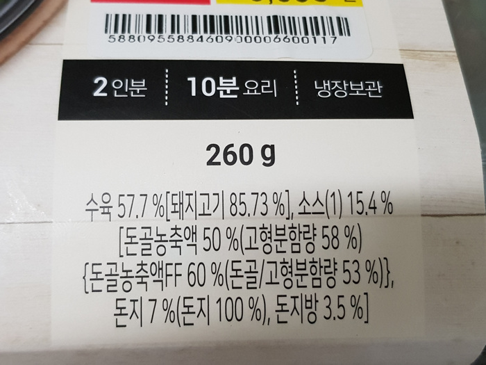 10분 요리라 퇴근 후 간단하게 해 먹기에 딱이죠. 수육과 돈골농축액등이 들어 있네요.