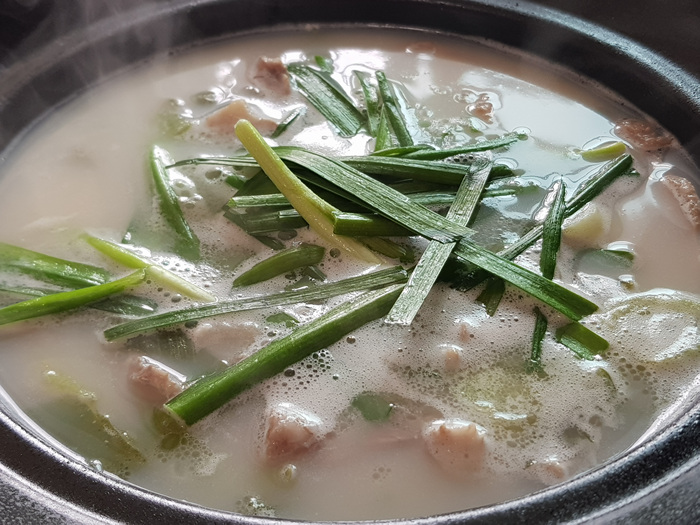 부산에서 먹던 돼지국밥과 거의 비슷합니다. 단, 양념장을 따로 안 넣어 먹는다는 점만 빼고요.