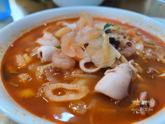이 곳에서 유명한 짬뽕이 나왔다. 해물 위주의 짬뽕인데 건더니가 풍성하니 마음에 든다. 우린 보통 이곳에 가면 매운맛으로 해 달라고 한다. 그냥 보통맛은 조금 느끼할 수 있으니 참고하길...