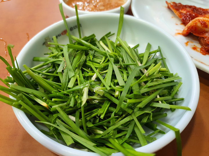부추는 돼지국밥에서 없어서는 안될 채소이고요.