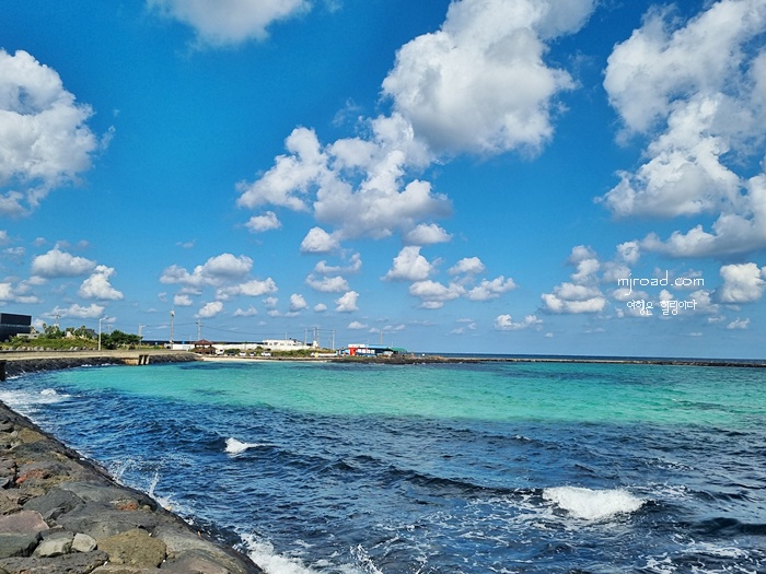 신흥리에서 함덕 초입까지 약 30분 정도 걸으니 눈앞에 펼쳐진 풍경은 부산의 한 미포 철길이 있는 풍경이 떠 올랐다. 열차만 지나지 않을 뿐이지 분위기는 비슷했다. 아니 더 아름다운 모습이었는지도 모른다. 상쾌한 공기, 에매랄드 빛 바다 그리고 가을하늘이 더 황홀하게 뿜어냈으니까......