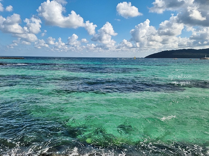 신흥리에서 함덕가는 길까지 약 30분 정도 걸었는데 눈에 담기만 하기엔 너무도 아름다운 풍경에 몇 번을 서서 자세히 보게 되었다. 바람도 없어 잔잔한 바다는 에매랄드빛을 보여줬고 여기가 외국의 한 휴양지인지 착각이 들 정도였다. 제주도 동쪽 한적한 올레길을 찾는다면 이곳 개인적으로 추천해 본다.