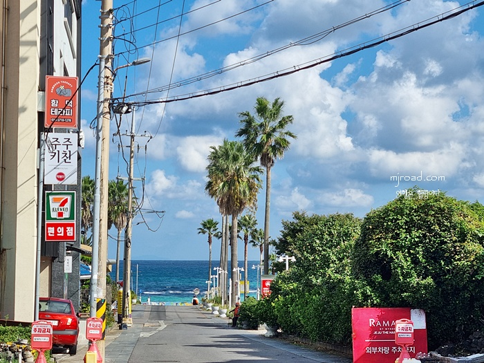 제주도답게 야자수도 도로옆을 장식하니 이국적인 모습은 저리 가라고 할 정도이다. 상쾌한 공기와 걷기 좋은 습도와 기온이 온몸을 감싸니 기분까지 좋아지는 시너지 효과를 얻게 되고 건강까지 챙기게 된다.