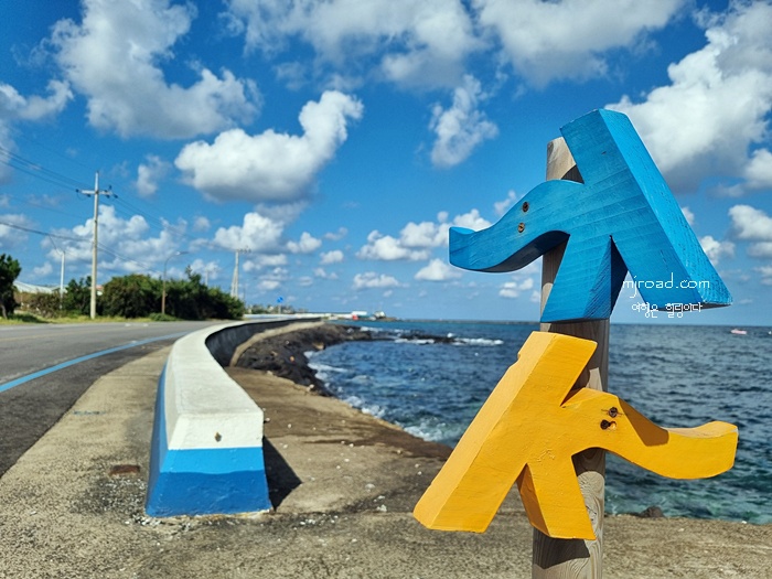 제주도 올레길은 이렇듯 잘 선택만 하면 복잡하지 않고 시끄럽지 않고 조용하게 걸을 수 있다. 이곳이 그랬다. 차도 많이 다니지 않았고 자전거도 많지 않았고 걷는 사람도 많지 않아서 더 좋았는지도 모르겠다.