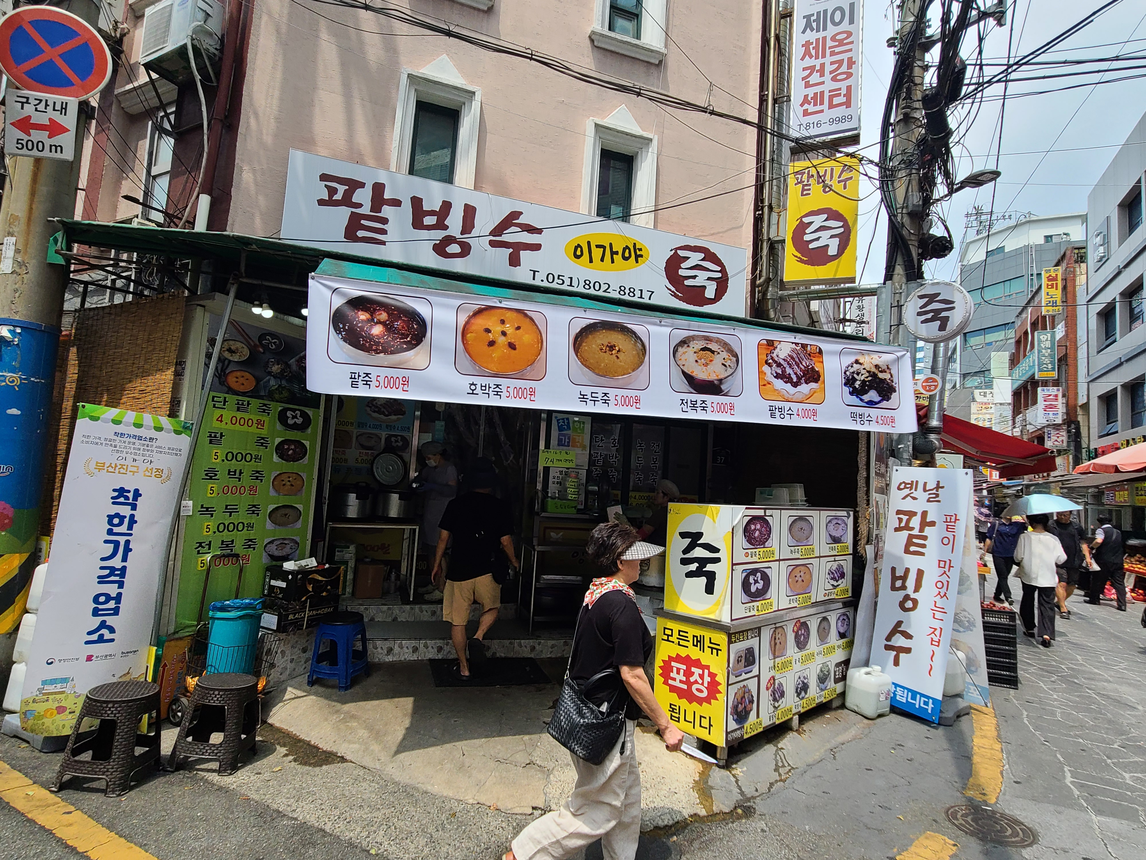 점심을 먹자마자 더위에 제 발길은 자연스럽게 팥빙수 가게로 향했습니다. 시장통이라 그런지 이곳은 나이드신 어르신들의 아지트 같았어요. 팥빙수 뿐만 아니라 뜨끈한 죽도 팔고 있었는데 가격이 어찌나 저렴하던지요.