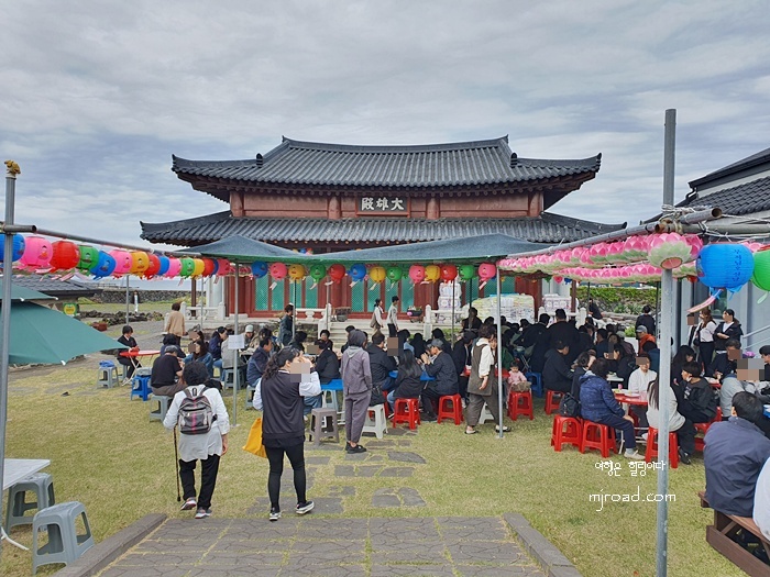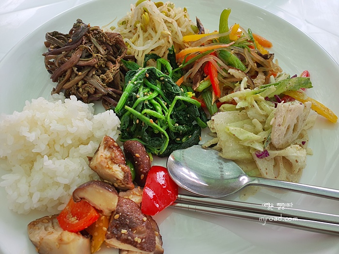동네 작은 사찰이지만 정말 아름다운 곳이다. 바다를 접해 있고 탁 트인 전망은 여느 사찰 못지 않게 뇌리 속에 사로 잡힌다. 점심시간이 가까워지니 점심을 먹기 위해 오신 분들이 많아 자리가 없을 정도였다. 다른 사찰과 달리 이곳은 뷔페식으로 음식을 본인이 알아서 담아 온다. 갖가지 나물이 건강한 느낌이 들고 맛도 삼삼하니 이것만 먹어도 맛있을 정도다. 반찬 하나하나에 고유의 맛을 느낄 수 있을 정도로 음식을 만든 분들의 손맛이 그대로 느껴졌다.