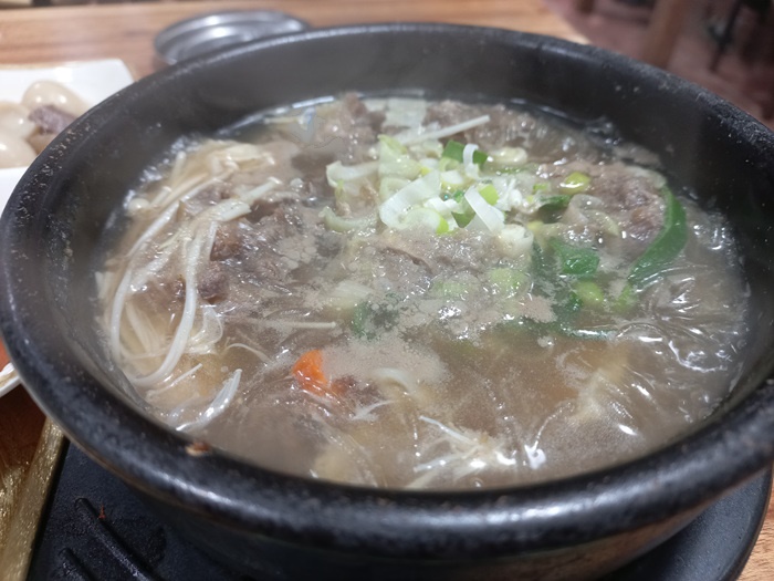 그리고 뚝배기에 보글보글 끓으며 나오는 불고기....완전 양도 푸짐하고 고기도 부드러웠습니다. 고기는 안창살이 들어 갔다고 직접 주인장께서 말씀하시더라고요. 그래서인지 더 맛있게 느껴졌습니다.