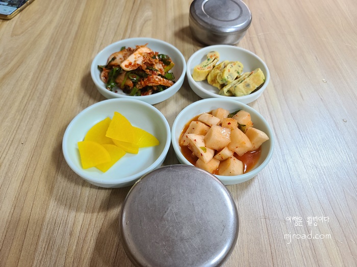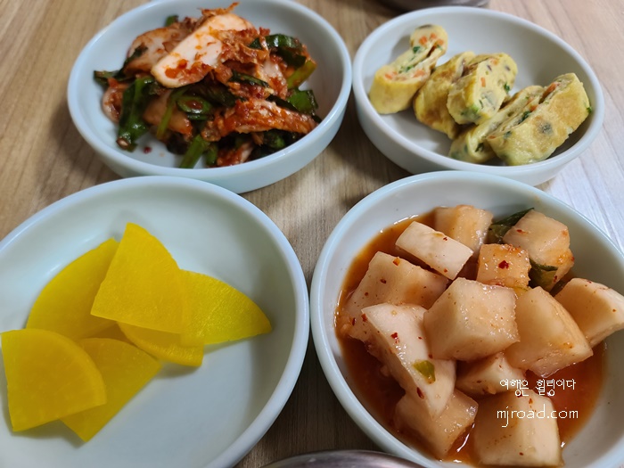 반찬은 직접 담근 김치와 깍두기 그리고 달걀말이 단무지가 나온다. 이 네가지 반찬만으로도 밥 한그릇은 뚝딱할 맛있는 반찬들이다.