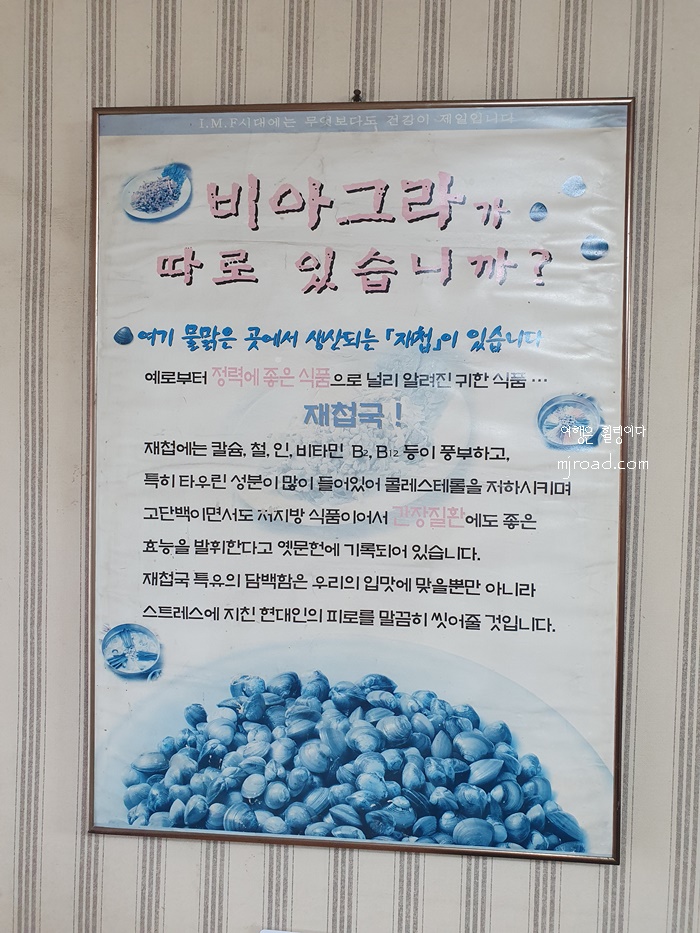 메뉴는 재첩 맑은국을 포함해 다슬기 된장국도 있었다. 재첩 맑은국이야 어릴때 아침에 많이 먹었던 음식이라 일단 패스하고 조금 생소한 재첩 된장국과 다슬기 된장국을 주문했다. 가격은 각각 10,000원