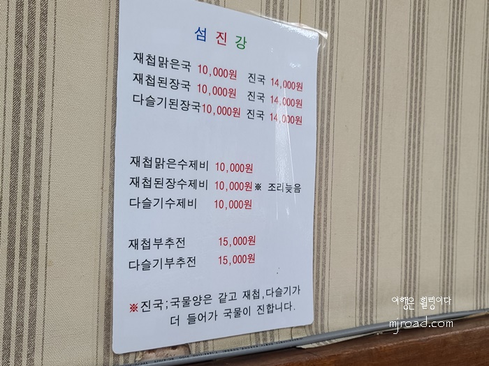 진국이라고 적혀 있는것은 국물양은 같고 재첩, 다슬기가 더 들어가 국물이 진하다고 되어 있다. 개인적으로 먹어 보니 그냥 일반으로 주문해도 상당히 재첩, 다슬기가 많이 들어 있어 진국을 따로 주문하지 않아도 될 정도였다.