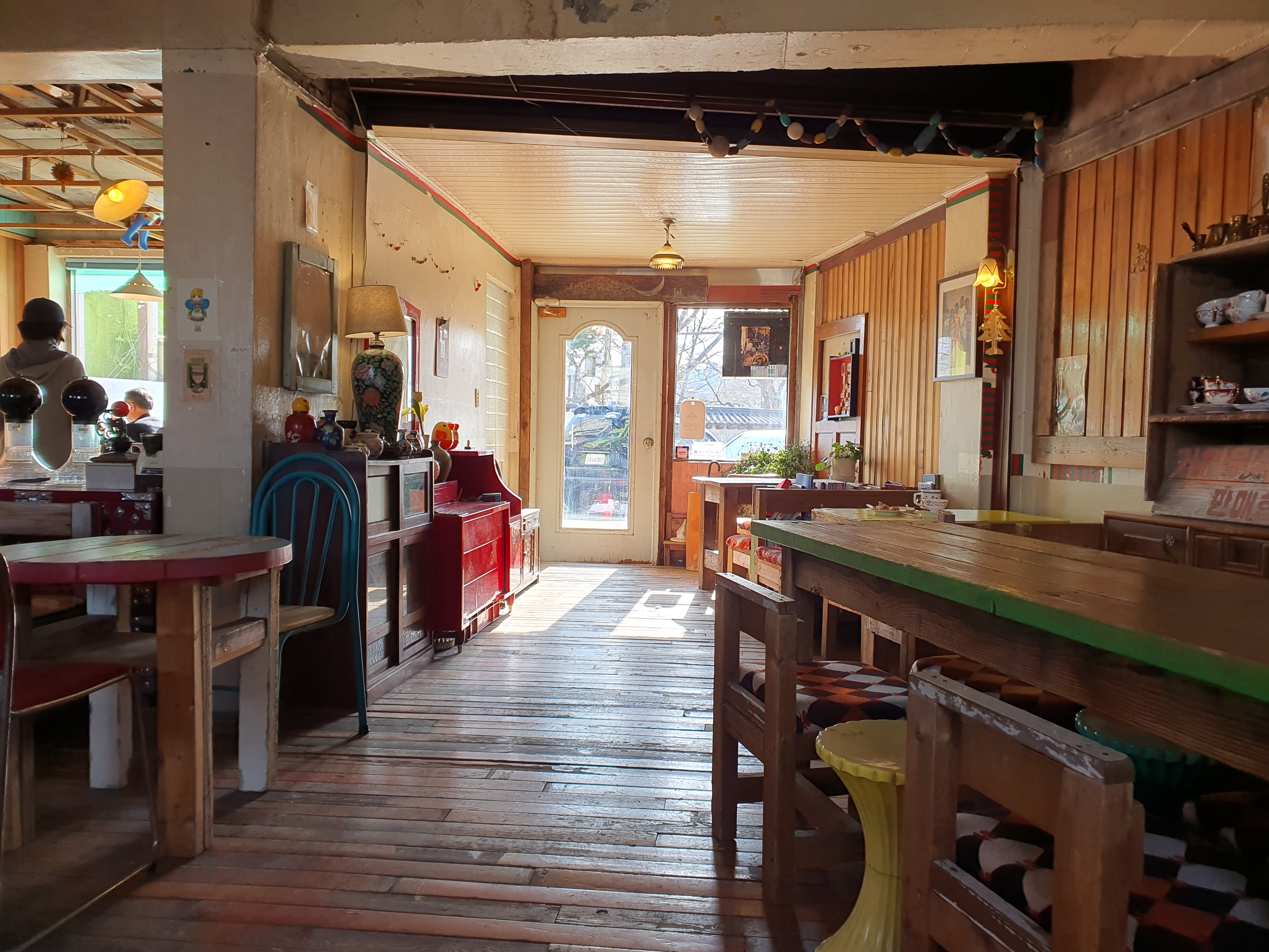 사실 커피숍이라고 하면 아무리 손님이 없어도 밀폐된 공간이면 커피 향이 조금이라도 나는데 그렇지 않아 당황하긴 했지만 희한하게 계속 앉아 있으니 묘한 빈티지 인테리어에 빠져들고 있더라는 것이다.