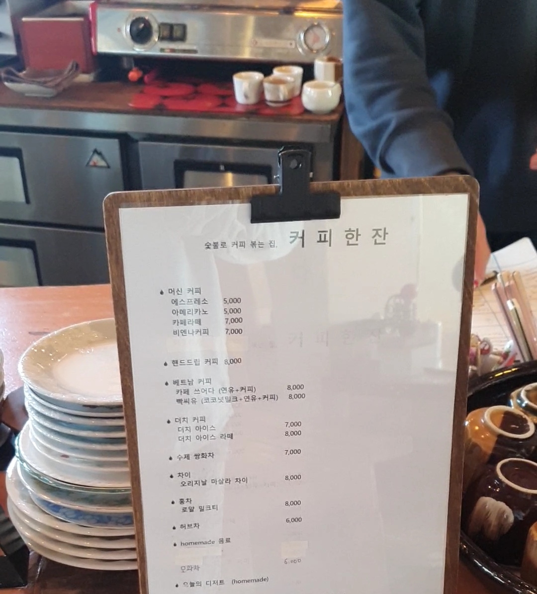 왜 이곳이 이곳 주변에서 유명한지는 사실 커피에 있다. 내부 인테리어와 대조적으로 커피가격이 상당히 비싼데 그 이유는 이곳에선 로스팅을 숯불에서 한다고 해 유명해진 거라고 한다. 사실 나도 그런 부분이 궁금해 일부러 이곳까지 왔으니까....
