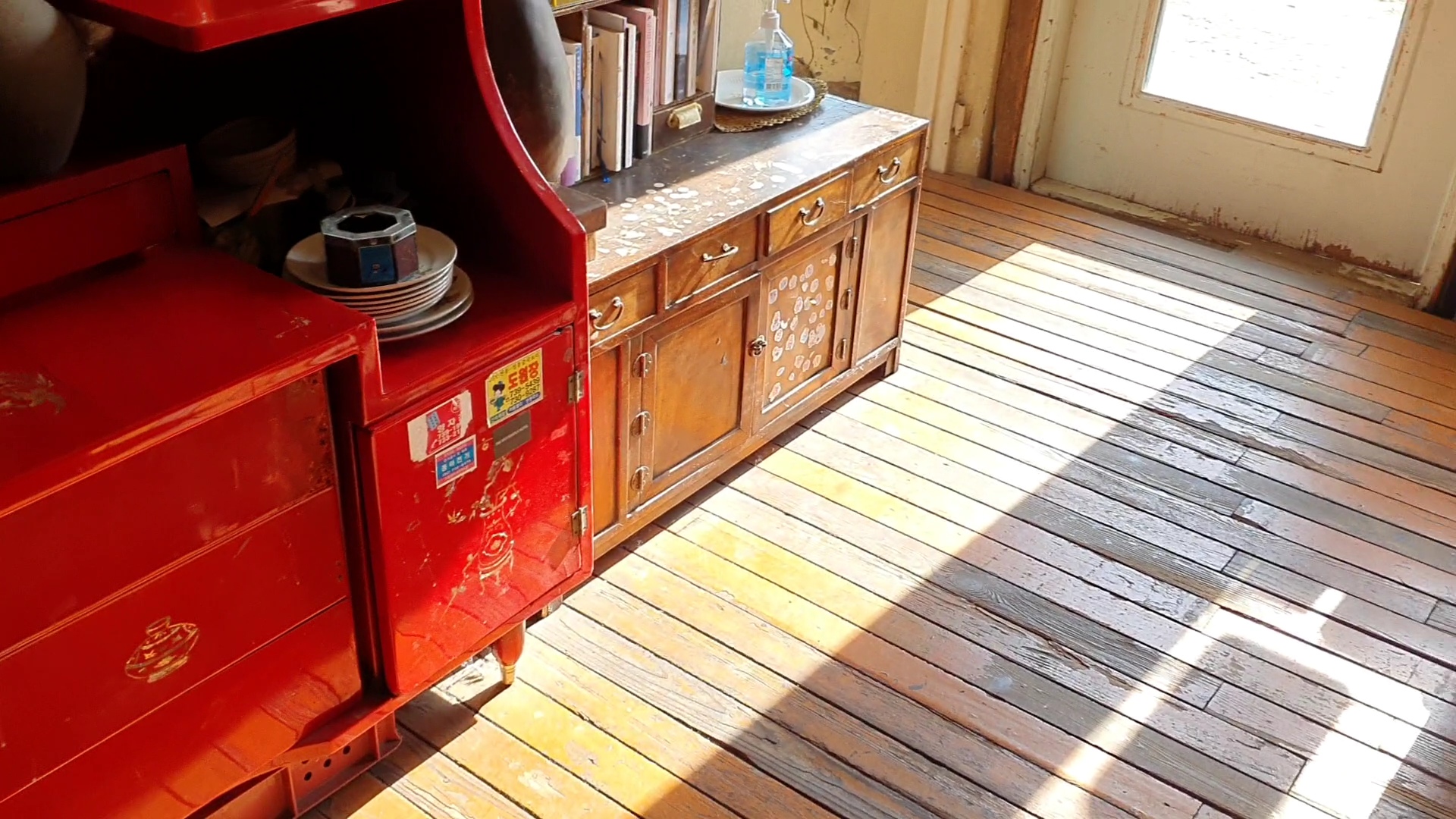 들어가자마자 내 눈을 의심하게 만든 천정은 솔직히 그냥 나가고 싶게 만들었고 주변의 물건들은 빈티지를 떠나 표현이 좀 격하 긴 하지만 고물상에 모아 둔 물건 같았다. 거기다 묘한 냄새까지 .....