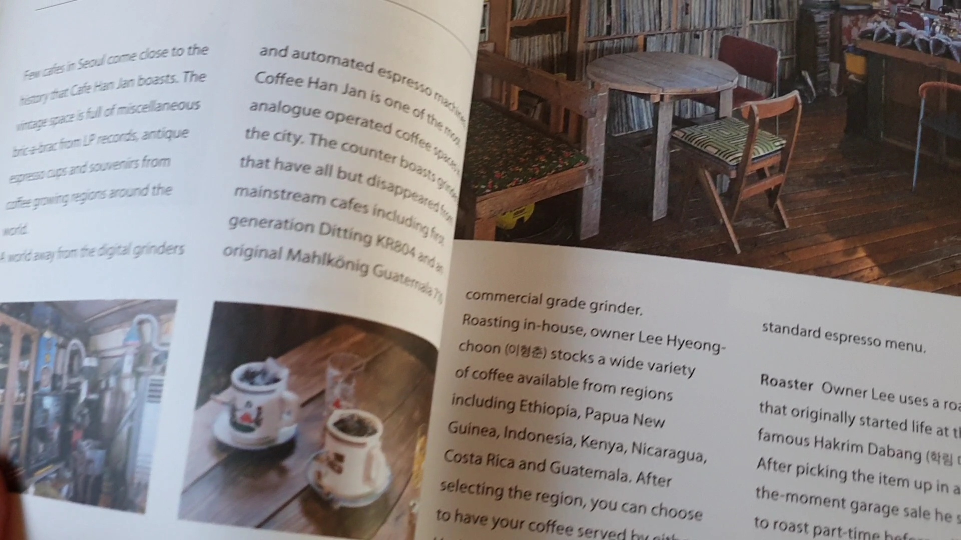 책을 펼쳐주는 것을 보니 여기 이 커피숍 내부가 맞았다. 조금은 신기하기까지 했지만 현재는 숯불로 하는 로스팅기계가 이곳엔 없었다. 많은 궁금증과 커피맛을 기대하고 갔지만 큰 해답은 찾지 못해 사뭇 아쉬웠다.