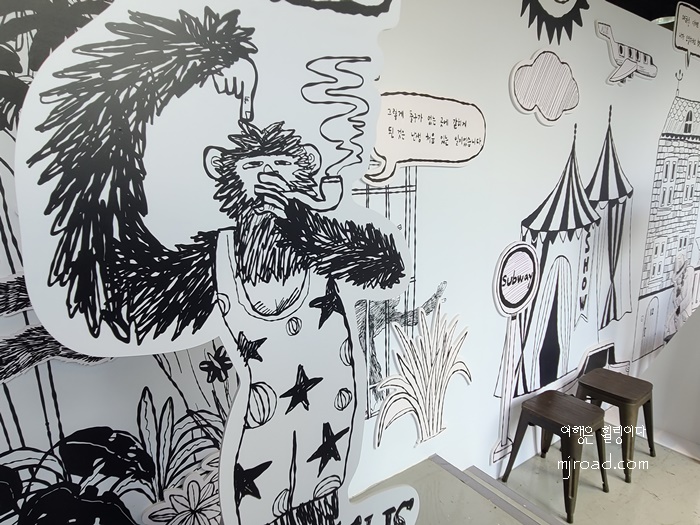 그림 속으로 들어간 내부 풍경은 동심으로 돌아간 듯한 기분이 들었고 한 두 개 놓인 의자에선 자연스럽게 포즈를 취하며 사진을 연신 찍어 댔다. 누구의 간섭도 없이 말이다.