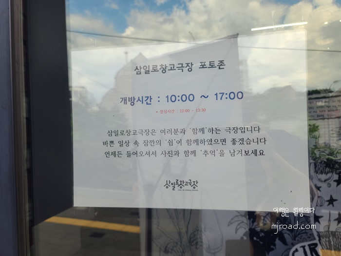 명동에서 커피를 마시고 내려오는 길에는 삼일로 창고극장이 있다. 간혹 지나가다 보긴 했지만 이번에 밖에서 본 모습은 사뭇 눈이 갔다. 포토존이란 이름으로 누구나 다 들어와 사진을 찍으라고 한 것처럼 입구는 열려 있었고 거리낌 없이 내부를 들어갈 수 있었다.