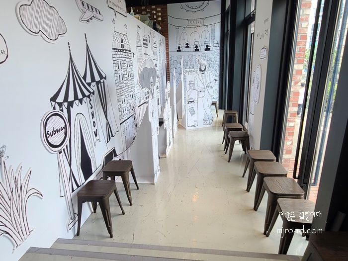 그림 속으로 들어간 내부 풍경은 동심으로 돌아간 듯한 기분이 들었고 한 두 개 놓인 의자에선 자연스럽게 포즈를 취하며 사진을 연신 찍어 댔다. 누구의 간섭도 없이 말이다.
