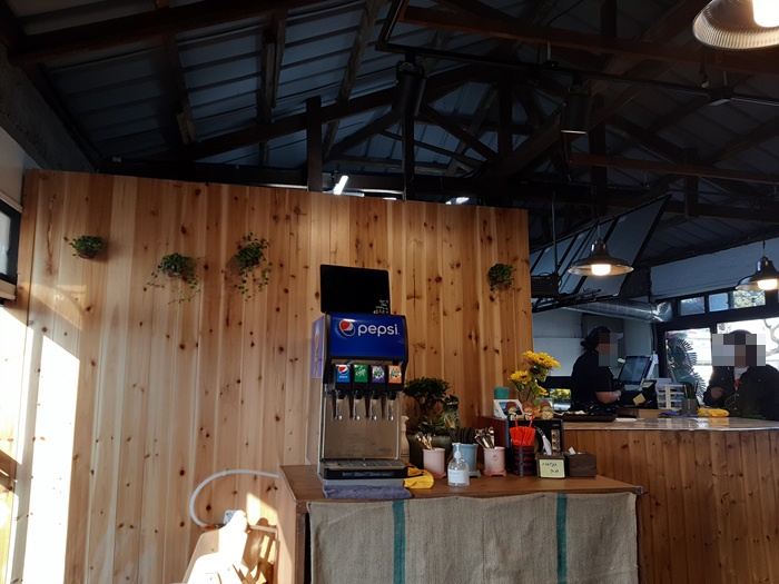 테이블은 2인 테이블, 4인 테이블이 각각 4~ 5개 정도 있었던 것으로 기억됩니다. 인테리어는 그렇게 화려하지도 않고 소소하니 이곳 제주도와 잘 어울리는 분위기였습니다.