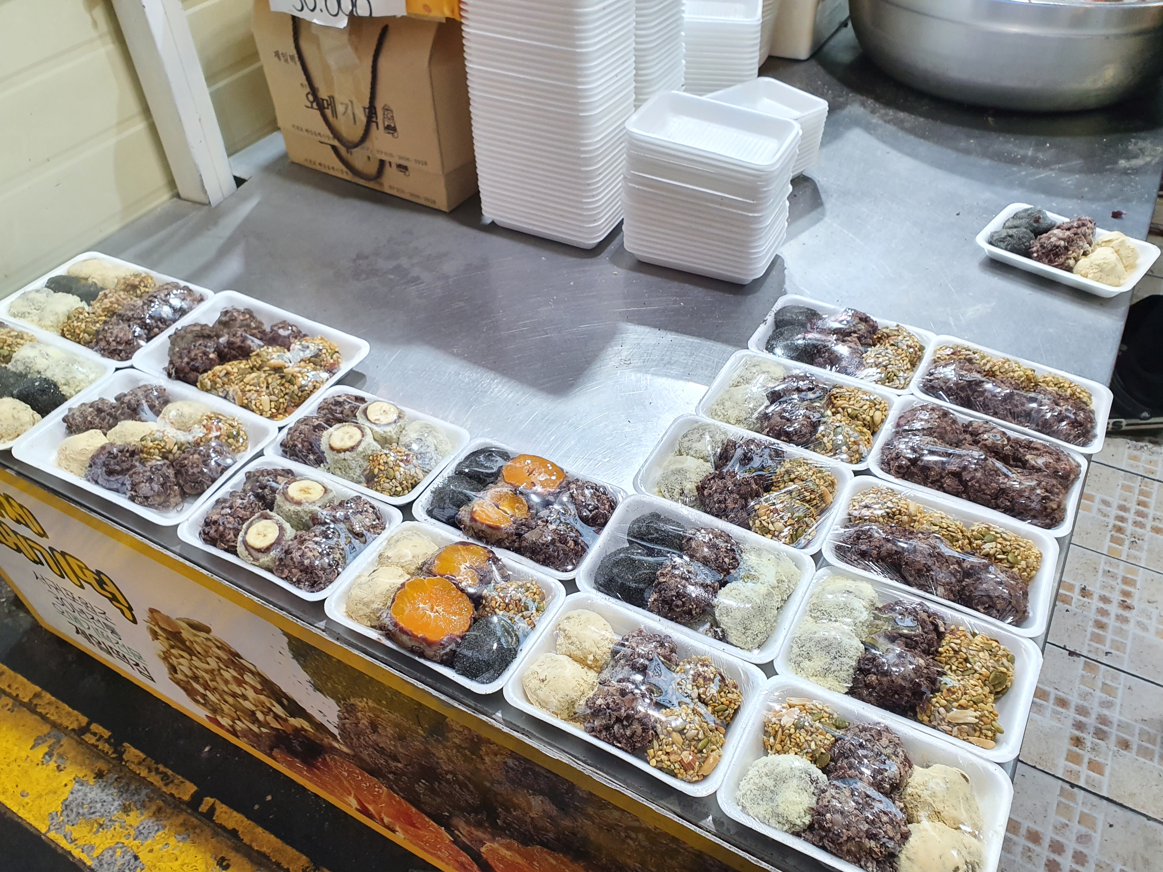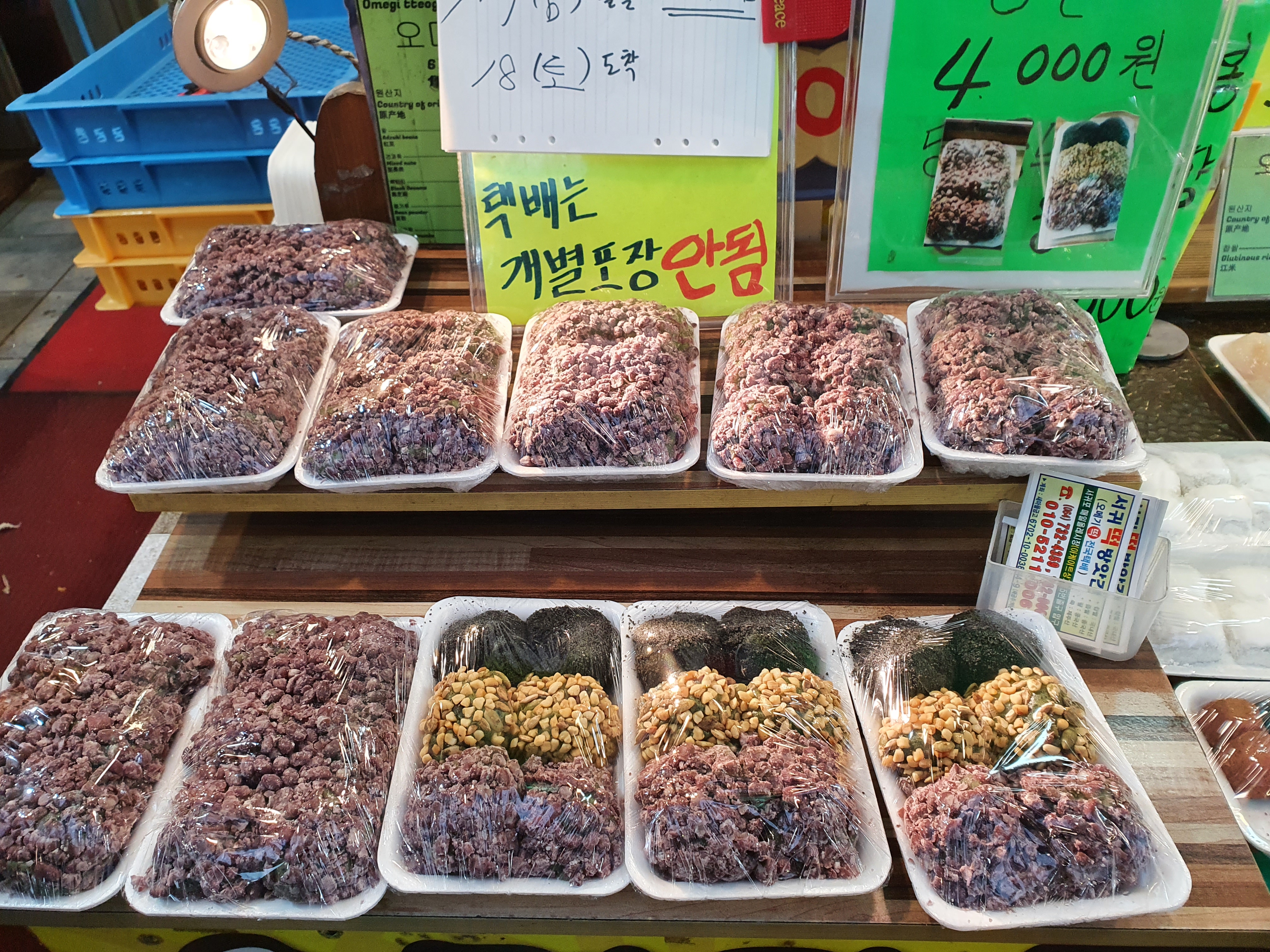 그중에서 제일 많이 보게되는 메뉴 중 하나가 오메기떡인데요. 가게마다 가격이 차이가 나기에 시장 구경하다 저렴한 곳에 들어 가시면 됩니다.