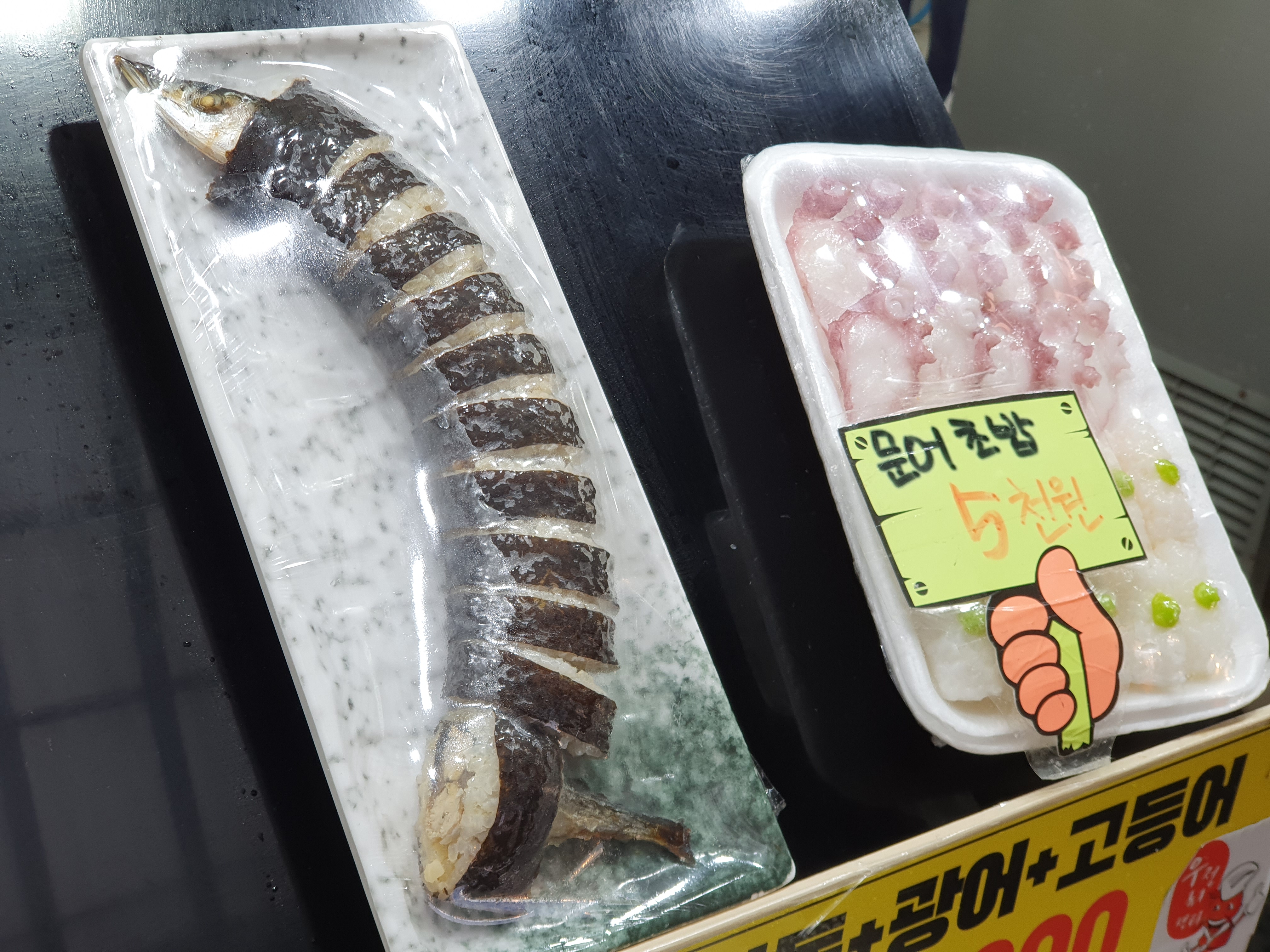 꽁치가 통째 들어간 꽁치김밥 이곳 시장에서 많이 사랑받는 이색김밥이기도 하지요.