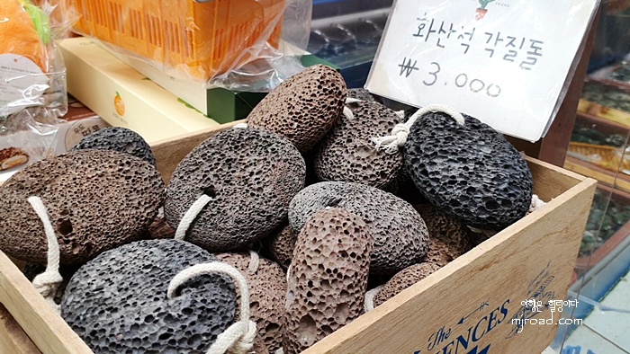 간혹 이곳도 관광객들이 지나서일까... 화산석으로 만든 돌도 판매 하고 있었다. 나도 예전에 구입해서 사용해 봤는데 돌이라서 아플 것 같았는데 의외로 부드럽고 괜찮았던 기억이 난다.