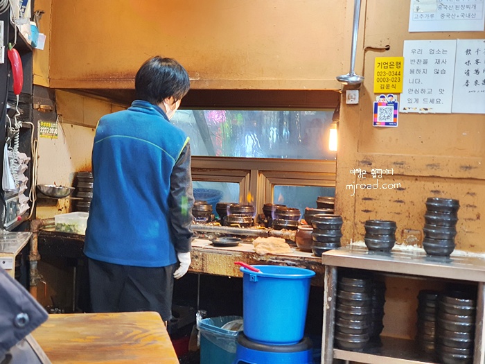 가게 안으로 들어가면 제일 먼저 보게 되는 것이 뚝배기를 가득 올려 둔 가스렌지다. 저녁시간이 되면 뚝배기 올려 놓을 자리가 없을 정도로 가득 놓여 있다. 가게 안을 그렇게 크진 안지만 다닥다닥 붙여진 테이블에 옛 정취도 은근히 느낄 수 있어 좋은 것 같다.