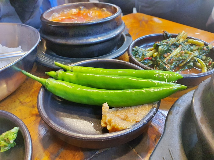 사실 입맛이 없을때는 풋고추만 있어도 한 그릇 뚝딱하는데 여행 중에 배가 고프면 이 정도 푸짐한 밥 양이라도 문제 없다.
