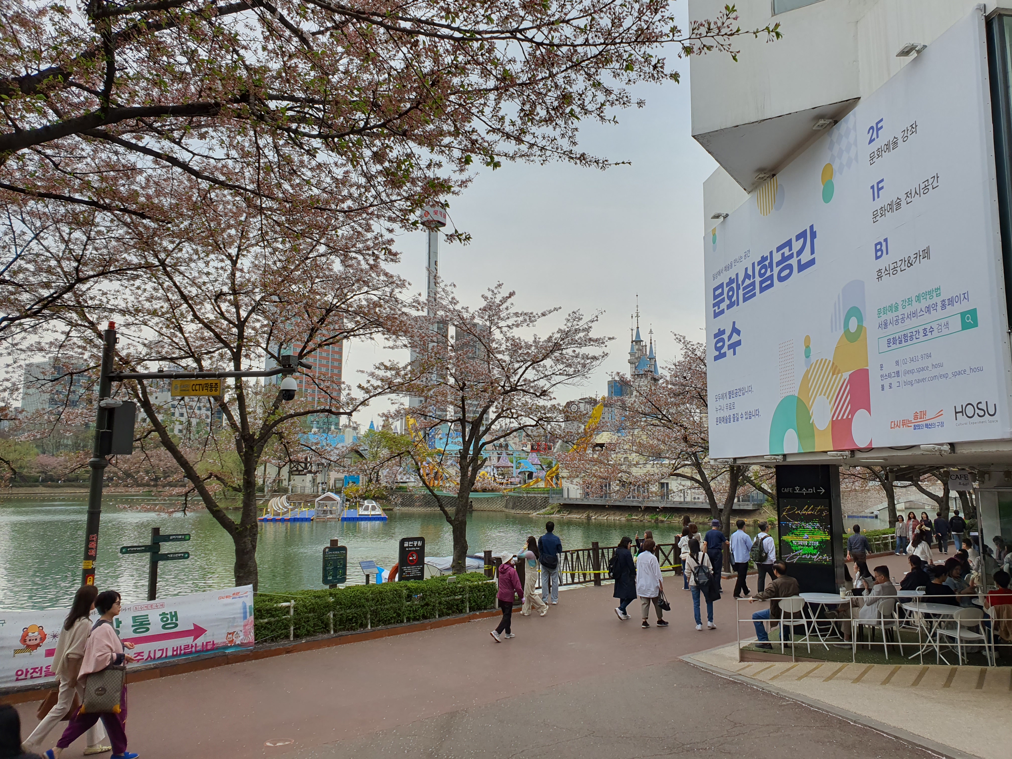 벚꽃 엔딩이었지만 또 다른 매력을 가진 석촌호수 풍경이었고 주변 놀이동산과 잘 어울려 남녀노소 누구나 찾아가는 그런 곳이었다. 군데군데 쉬는 공간도 있어 그또한 괜찮은 산책로였다.