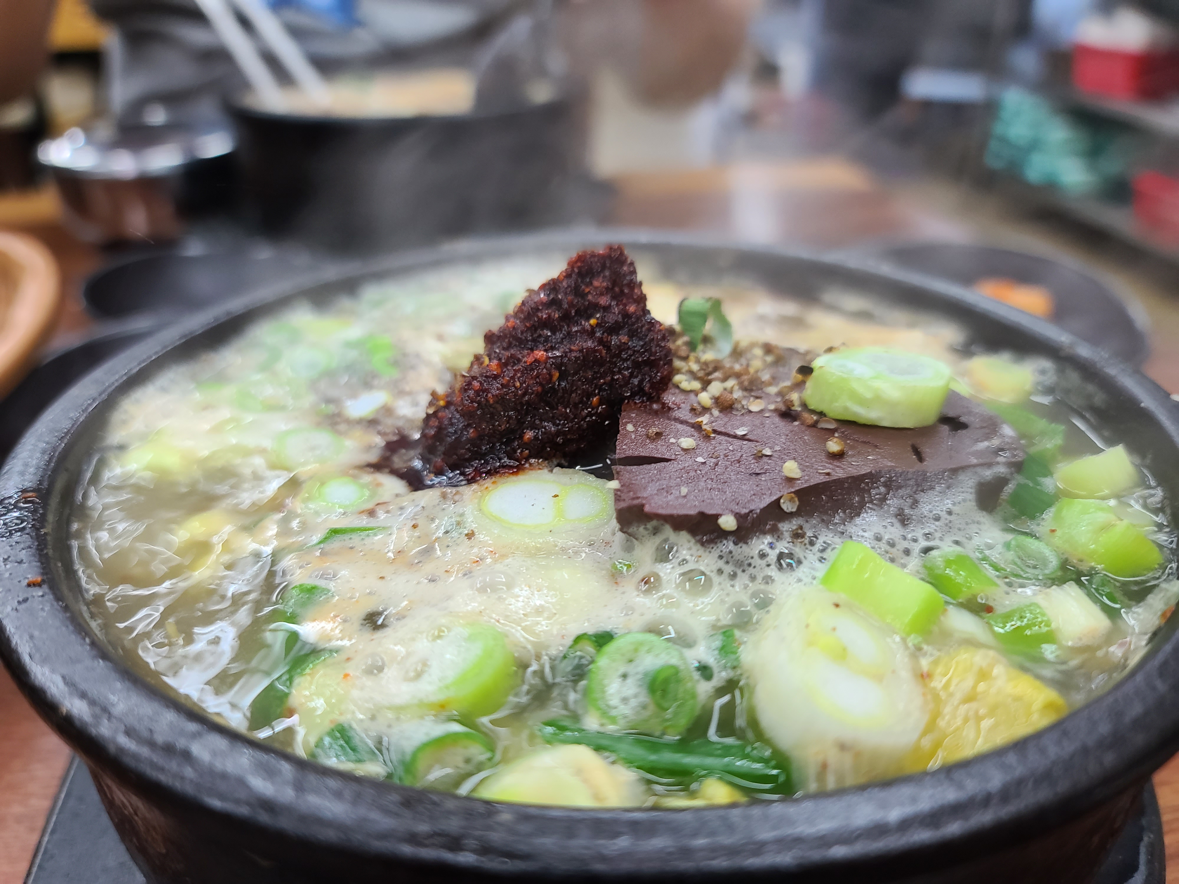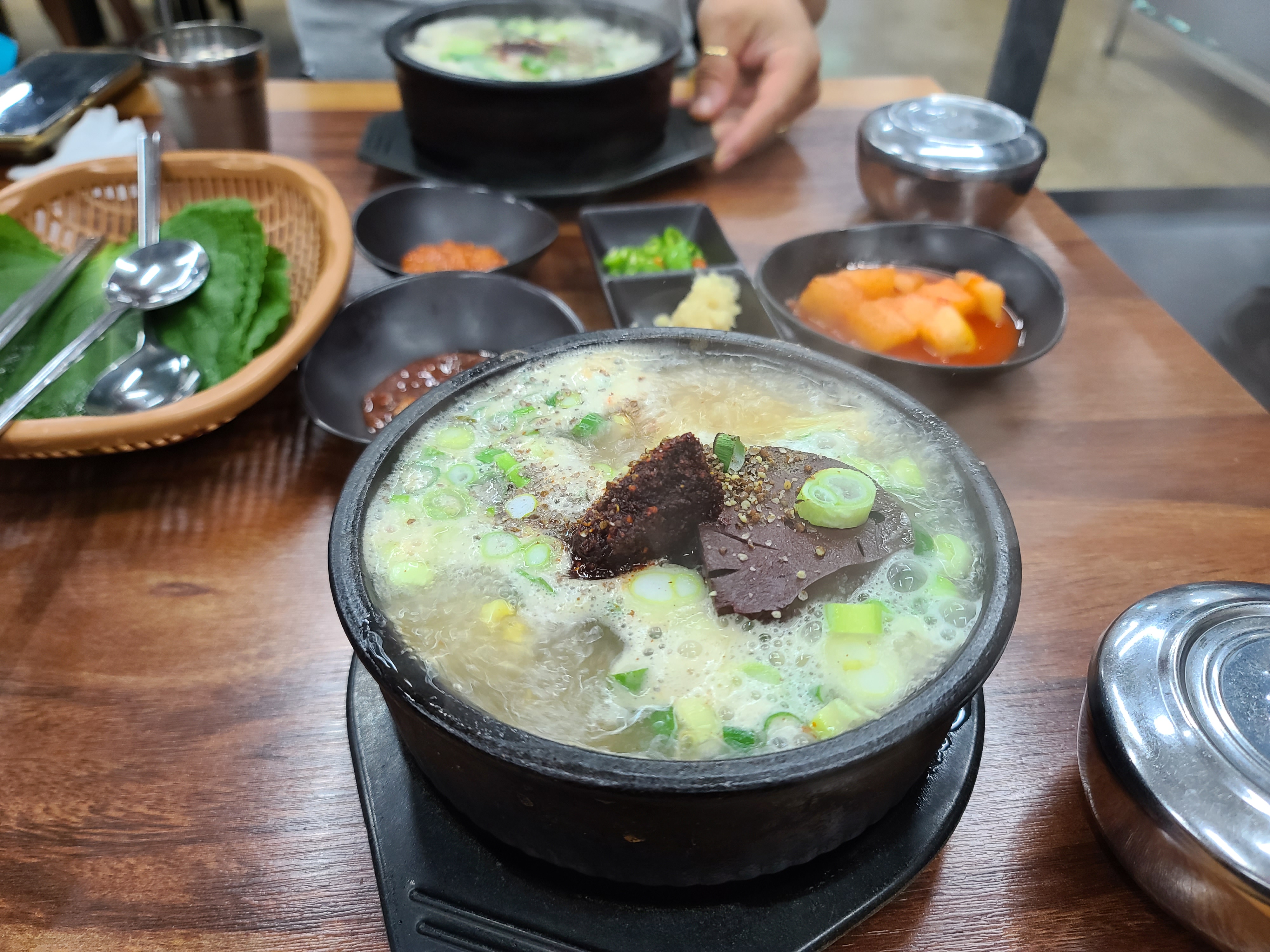 해장국과 내장탕이 나왔다. 생각보다 푸짐해 보이는 양이고 처음 해장국을 접하는 분들도 쉽게 도전 가능한 맛이다.