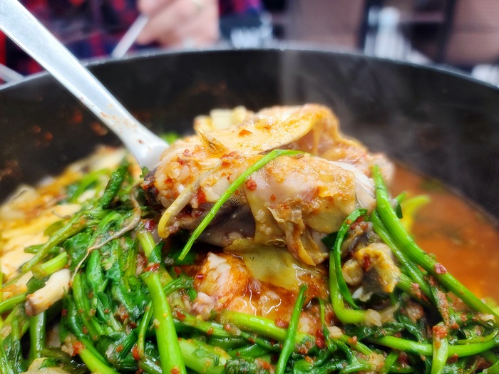 참게가 이렇게나 많이 들어가 있으니 국물이 안 시원할 수가 없죠. 정말 국물 맛은 끝내줬어요.