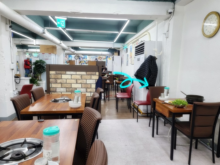 가게 오픈 시간에 맞춰 가게 안에 들어서니 테이블에 반찬이랑 뚝배기가 놓여 있었습니다. 처음엔 예약석인가 하고 그 자리만 비켜 앉으려고 하니 반찬이 차려진 자리에 앉으라고 하더라고요. 알고보니 점심시간에 손님이 몰릴 것을 대비해 세팅을 하고 있었던 것이었습니다.