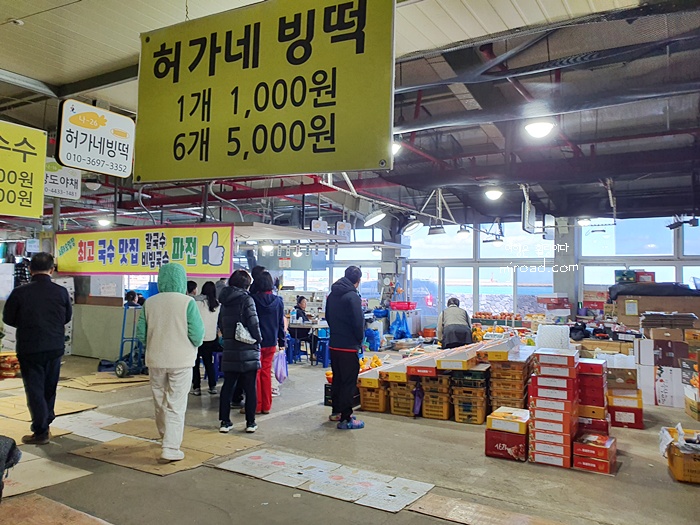 보통 이곳은 과일, 잡화, 생선, 건어물, 의류, 화훼등 150여 개의 다양한 가게들이 열리는데 내가 간 날은 문을 거의 다 닫은 상태라 아쉬웠다. 그나마 주변의 아름다운 바다가 있어 다행이라는 생각이 들었다.