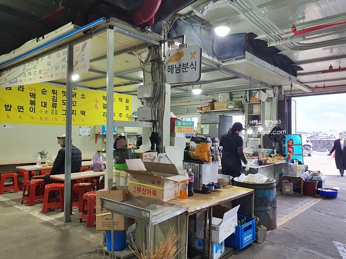 보통 이곳은 과일, 잡화, 생선, 건어물, 의류, 화훼등 150여 개의 다양한 가게들이 열리는데 내가 간 날은 문을 거의 다 닫은 상태라 아쉬웠다. 그나마 주변의 아름다운 바다가 있어 다행이라는 생각이 들었다.