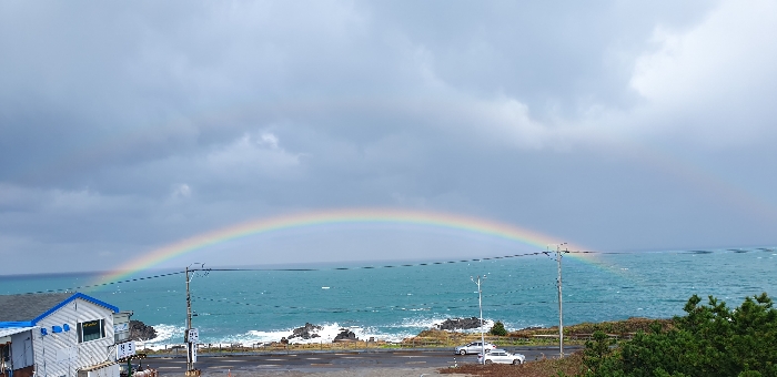 제주도는 천혜의 자연환경을 자랑하는 우리나라 최고의 여행지이다. 그렇다 보니 도심에서 느끼지 못하는 자연의 아름다움을 어느 곳에 가도 만끽하게 된다. 특히 비가 온 뒤 갑자기 햇살이 비출 때 생기는 무지개는 또 다른 낭만을 주기도 한다.