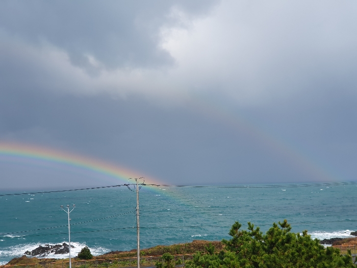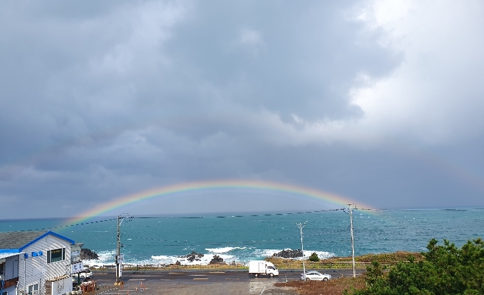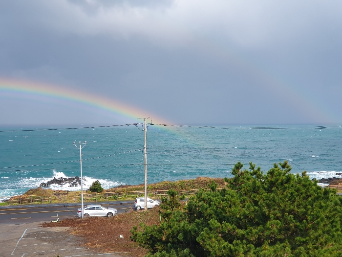 제주도는 천혜의 자연환경을 자랑하는 우리나라 최고의 여행지이다. 그렇다 보니 도심에서 느끼지 못하는 자연의 아름다움을 어느 곳에 가도 만끽하게 된다. 특히 비가 온 뒤 갑자기 햇살이 비출 때 생기는 무지개는 또 다른 낭만을 주기도 한다.