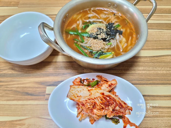 제천엔 메밀로 만든 음식들이 많다. 그렇다보니 기본 칼국수도 메밀로 만든 것이다. 쫀득하니 맛있었고 개인적으로 국물이 정말 맛있었다. 얼큰하면서도 느끼하지 않고 말이다. 술 먹은 다음날 먹으면 이만한 해장국이 없을 정도라는 생각이 들 정도였다.