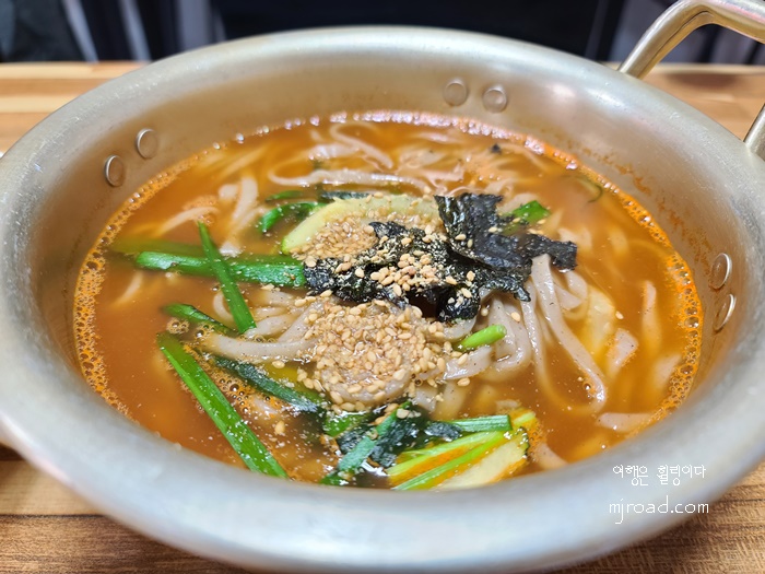 제천엔 메밀로 만든 음식들이 많다. 그렇다보니 기본 칼국수도 메밀로 만든 것이다. 쫀득하니 맛있었고 개인적으로 국물이 정말 맛있었다. 얼큰하면서도 느끼하지 않고 말이다. 술 먹은 다음날 먹으면 이만한 해장국이 없을 정도라는 생각이 들 정도였다.