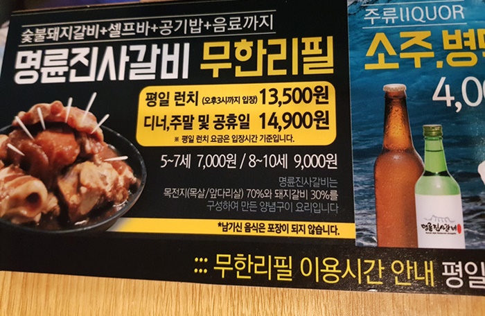 숯불돼지갈비가 먹고 싶을때 한번씩 가게되는 명륜진사갈비 고깃집은 사실 맛도 있지만 무한리필이 되어 너무 좋은것 같습니다. 물론 가격도 저렴하고 고기도 정말 신선하지요.