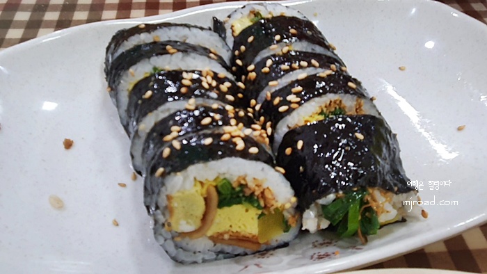 김밥집 문을 열고 들어가면 시장과 연결된 통로가 보인다. 고소한 김밥 냄새를 맡으며 그냥 지나치기가 쉽지 않아 대부분 이곳에서 식사를 하시나 보다.