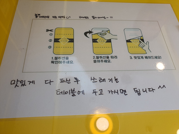 먹은 법은 1,2,3 순서대로 뜯어서 계란밥을 먹으면 됩니다. 생각보다 간단해요.
