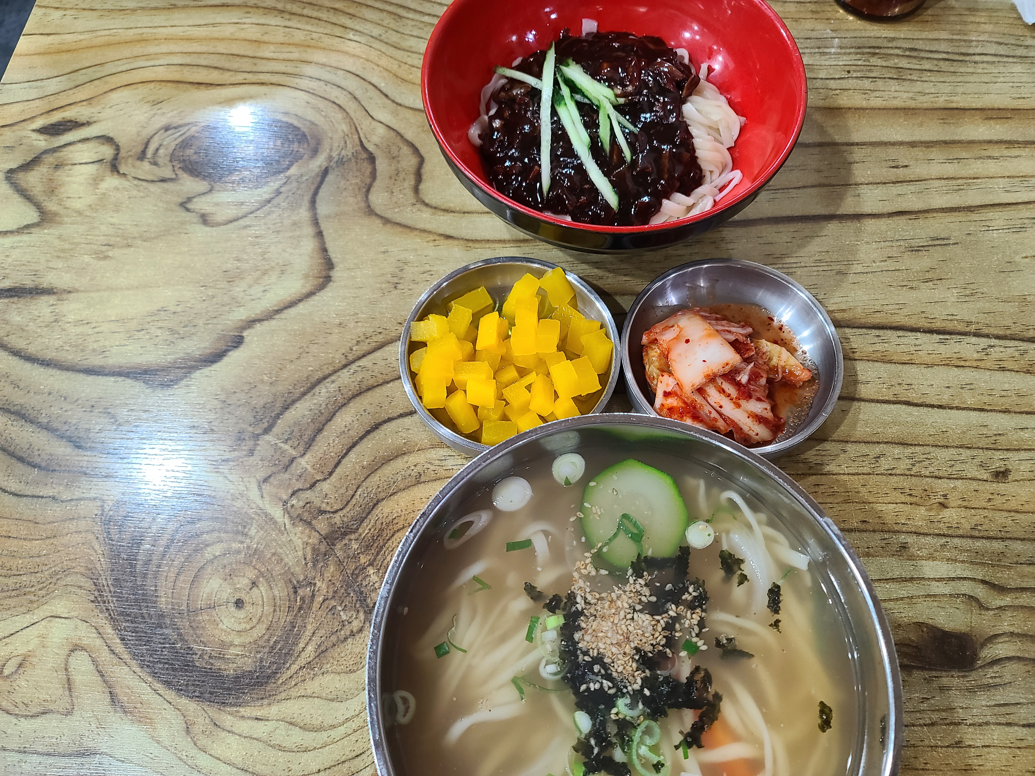 단돈 3,000원 짜리 칼국수와 짜장면이 나왔다. 양도 푸짐하고 멸치육수의 진한 맛이 많이 느껴져 맛있었다.