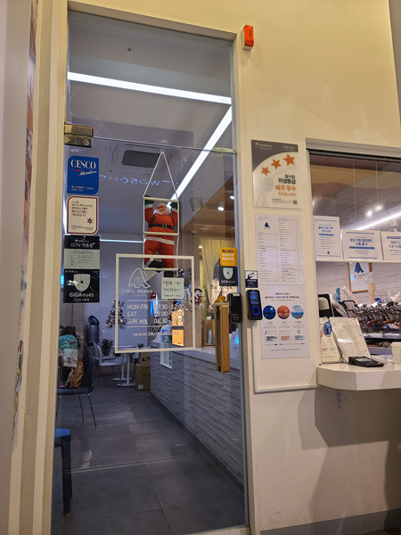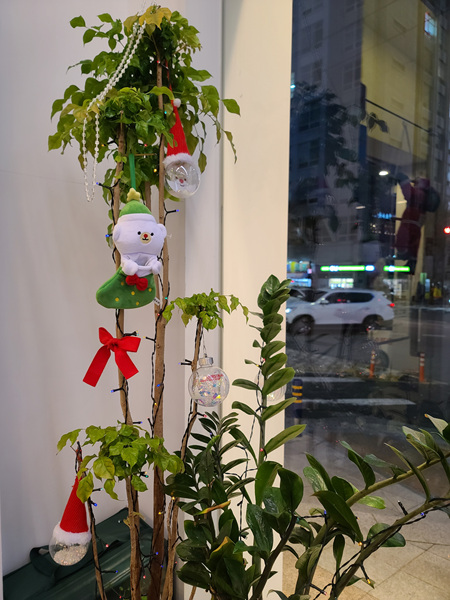 우리가 간 날이 연말이라 가게 곳곳에 아기자기한 연말 분위기 인테리어가 참 이쁘더라고요. 밖에서 보기에도 잘 보이니 이렇게 해 놓으면 커피 한 잔 하러 들어가고 싶을거예요.
