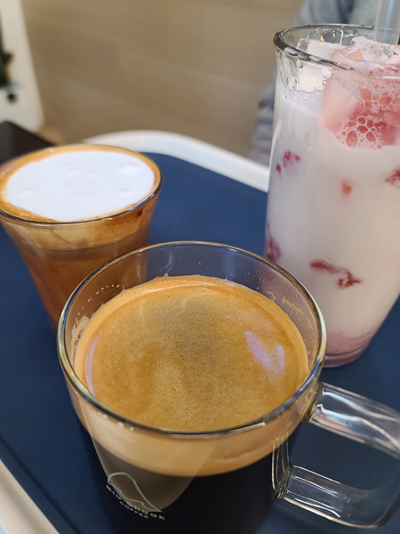 좌석이 몇 개 되지 않아 대부분 테이크아웃을 하고 가는 그런 곳인데요. 우리가 간 날은 좌석이 몇 개 남아 있어 자리에 앉아서 마실 수 있었어요.