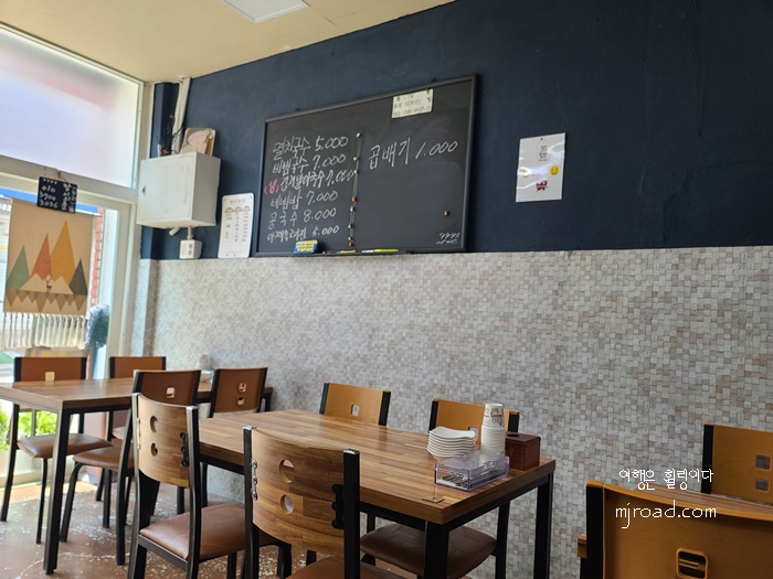 국수집으로 들어서면 테이블이 6개 정도 되는데 주택가라 그런지 대부분 동네분들이 많이 가는 그런 곳이라고 했다. 점심시간이 조금 지난 시간이라 손님은 없었지만 가게 안으로 들어서면 진한 멸치육수 냄새가 진동을 한다.
