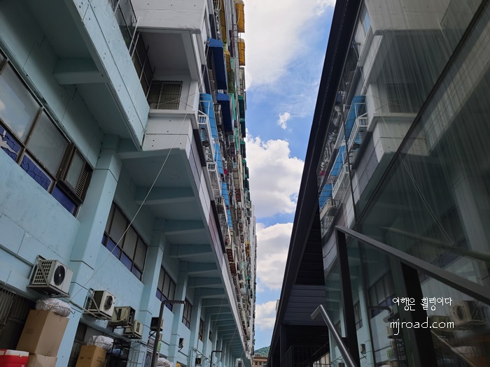 공중 보행로를 지나 진양상가 쪽으로 걸어 오니 갑자기 외국인 듯 아닌 듯 헷갈리게 하는 풍경이 펼쳐졌다. 마치 홍콩의 한 아파트를 연상케하는 그런 영화같은 모습이었다.
