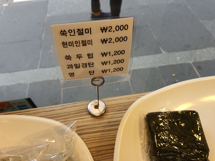 이곳에 가면 떡은 1개씩 개별 포장이 되어 있다. 가격도 1,200원 부터 시작해 2,000원선이 대부분이라 하나씩 맛본다고 고르다 보면 어느새 바구니에는 푸짐하게 쌓인다. 그래도 맛있는건 어쩔 수 없이 다 고르게 되니 주머니 사정 감안해서 가야한다.
