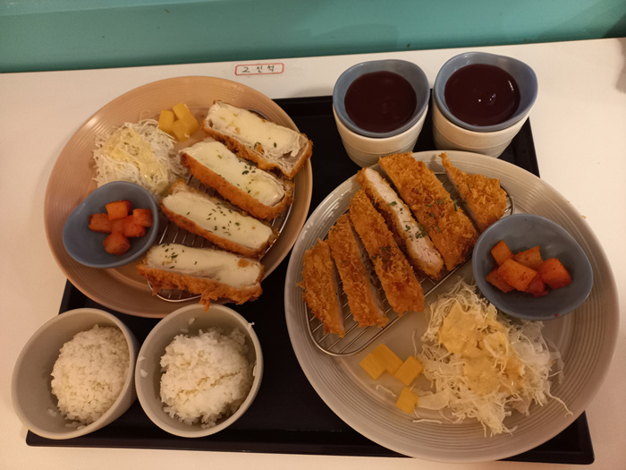 우리가 주문한 음식이 나왔다. 일반 등심까스와 치즈까스를 주문했다. 생각보다 많은 양에 놀랐다.