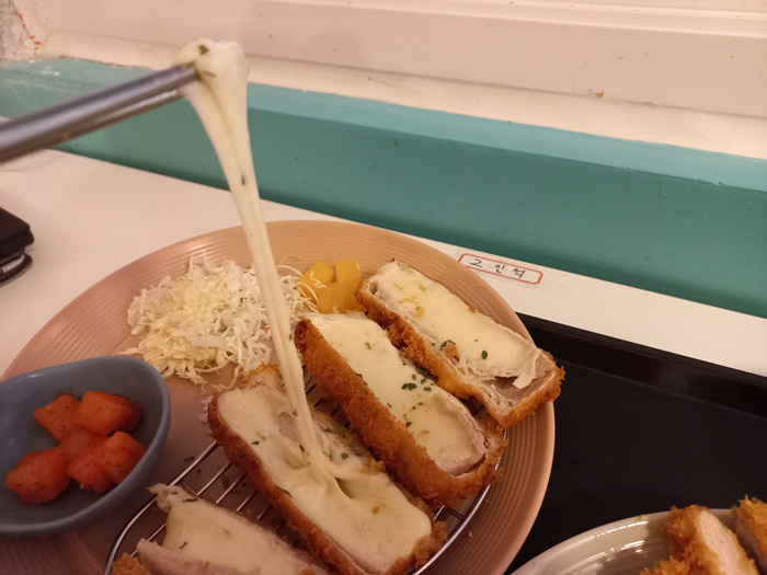 치즈까스는 연돈 돈까스와 거의 흡사할 정도로 비주얼이 대박이었고 맛도 괜찮았다.