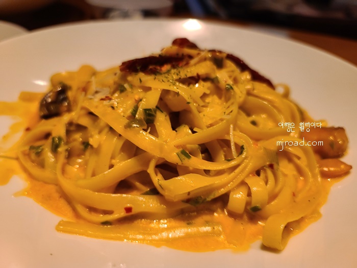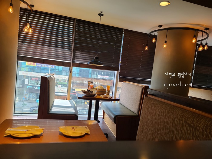 보통 낮에가면 특선 메뉴들로 주문하면 크게 부담스럽지 않다. 고기, 파스타, 샐러드, 음료가 나오기 때문이다. 우린 보통 이곳에 가면 각종 할인을 많이 받아서 거의 30% 할인된 가격에 식사를 하고 오는 편이다. 다른 체인점과 달리 너무 어두운 조명 때문에 음식 사진이 그렇게 맛나 보이지 않아 보인다. 사실은 그렇지 않은데...